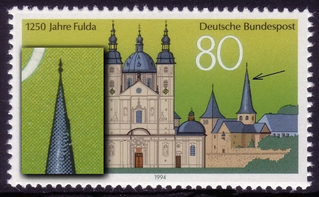 1722X Fulda mit PLF X verdickte rechte Turmkante, Feld 11, ** postfrisch