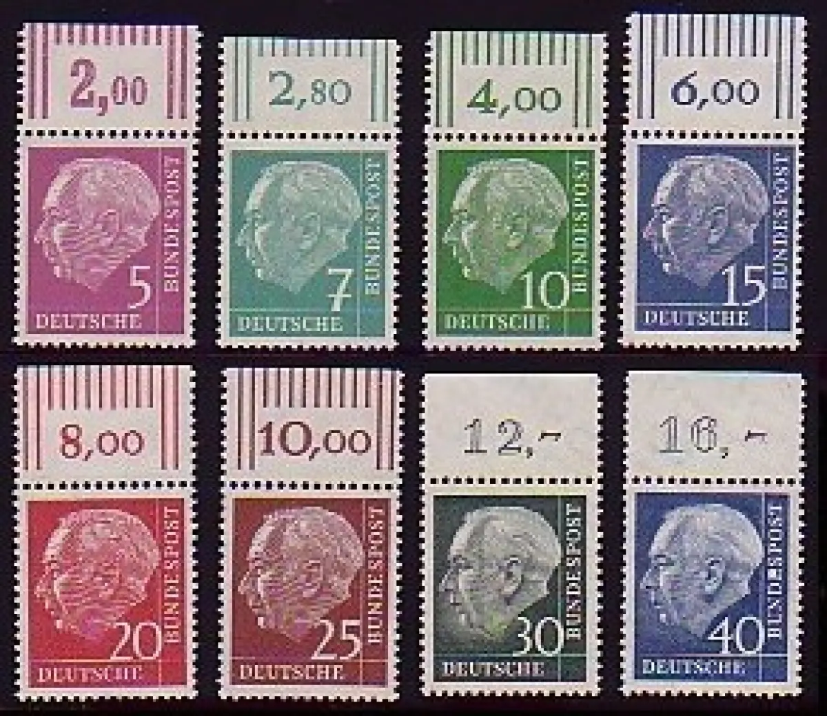 179-260y Heuss lumogen 8 Werte, Oberrand-Satz **
