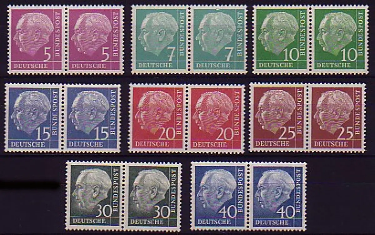 179-260y Heuss lumogen 8 Werte, waagerechte Paare, Satz **