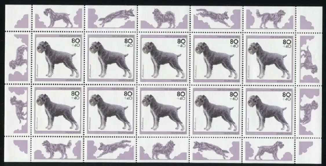 1798 Mittelschnauzer - 10er-Bogen mit PLF Strich über Vorderpfote, Feld 4, **