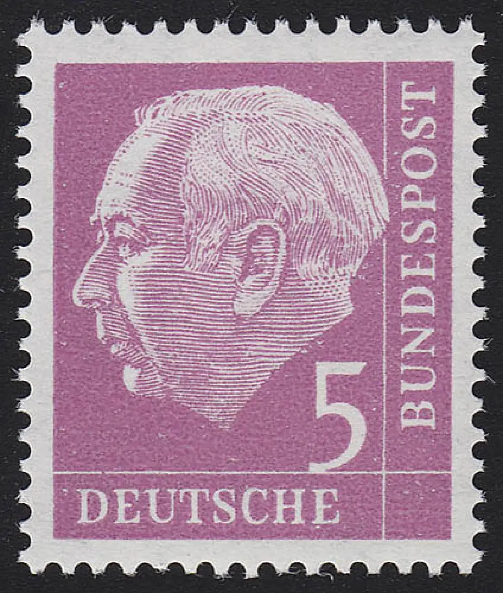 179x YwII Heuss 5 Pf liegendes Wasserzeichen, Type II **