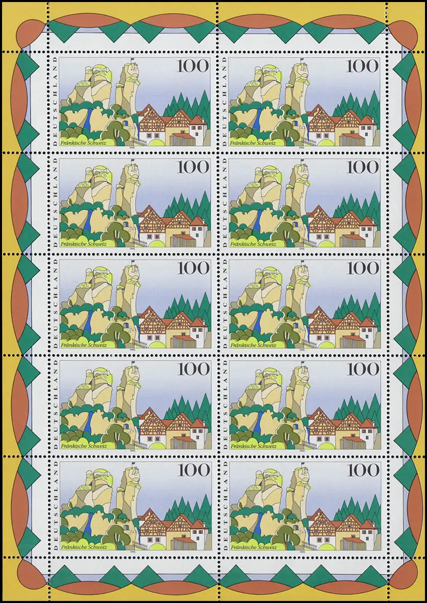 1807I Fränkische Schweiz-Kleinbogen: PV olivgrün und hellgrün und mit PLF I, **