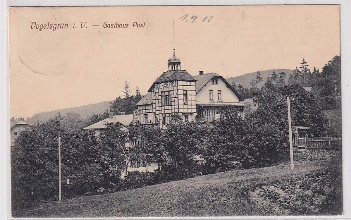 18164 Ak Vogelsgrün bei Auerbach i.V. Gasthaus Post 1913