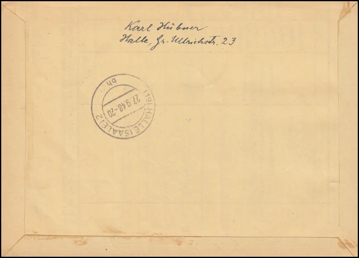Ankunftsstempel HALLE (SAALE) 27.9.48