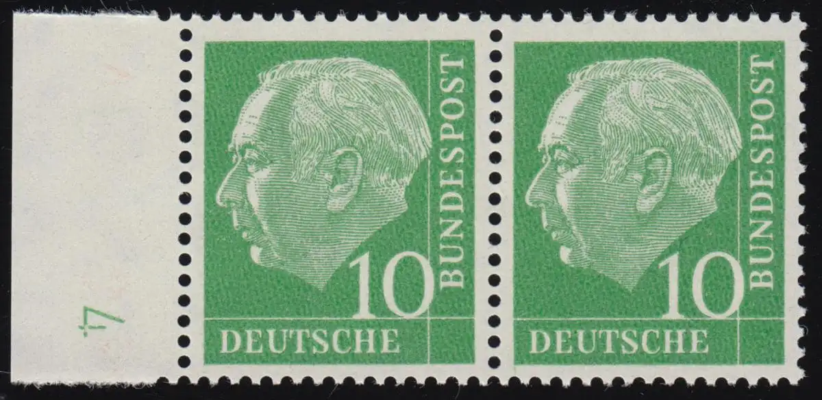 183y DZ Heuss 10 Pf lumogen- Randpaar Druckerzeichen DZ 4 positiv, ungefaltet **