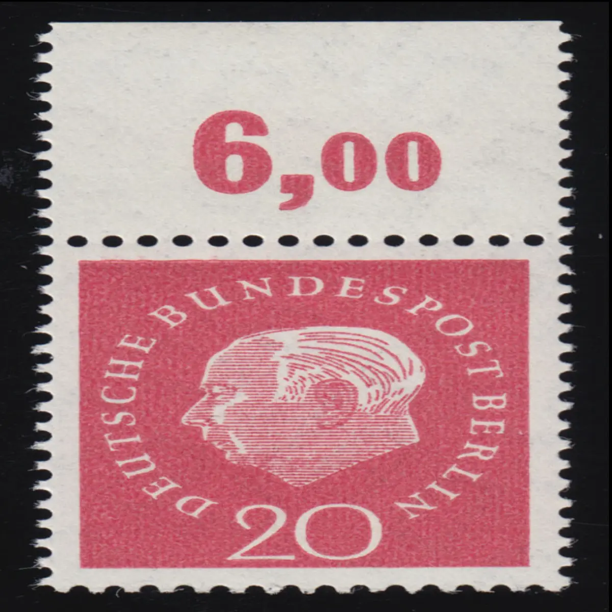 184v Heuss 20 Pf - Plattendruck/geriffelte Gummierung Oberrand **