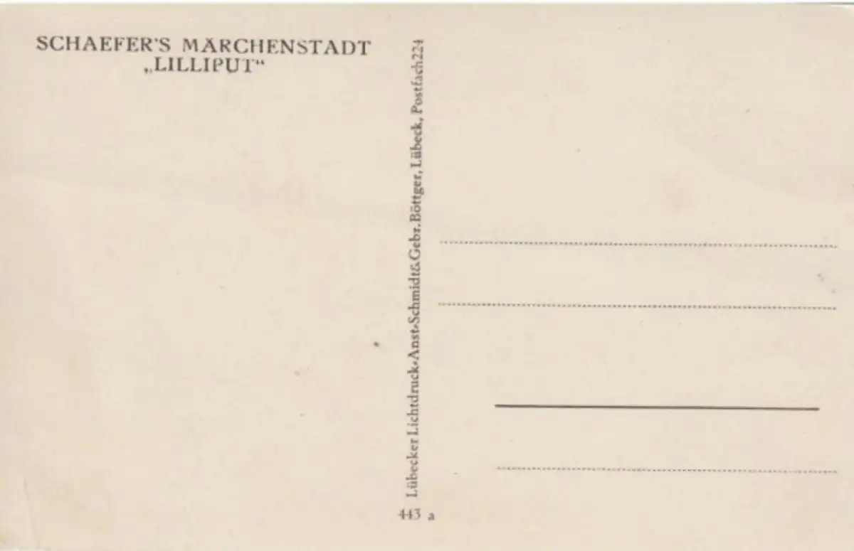 - (1851) AK Schaefers Märchenstadt Liliput, Berlin