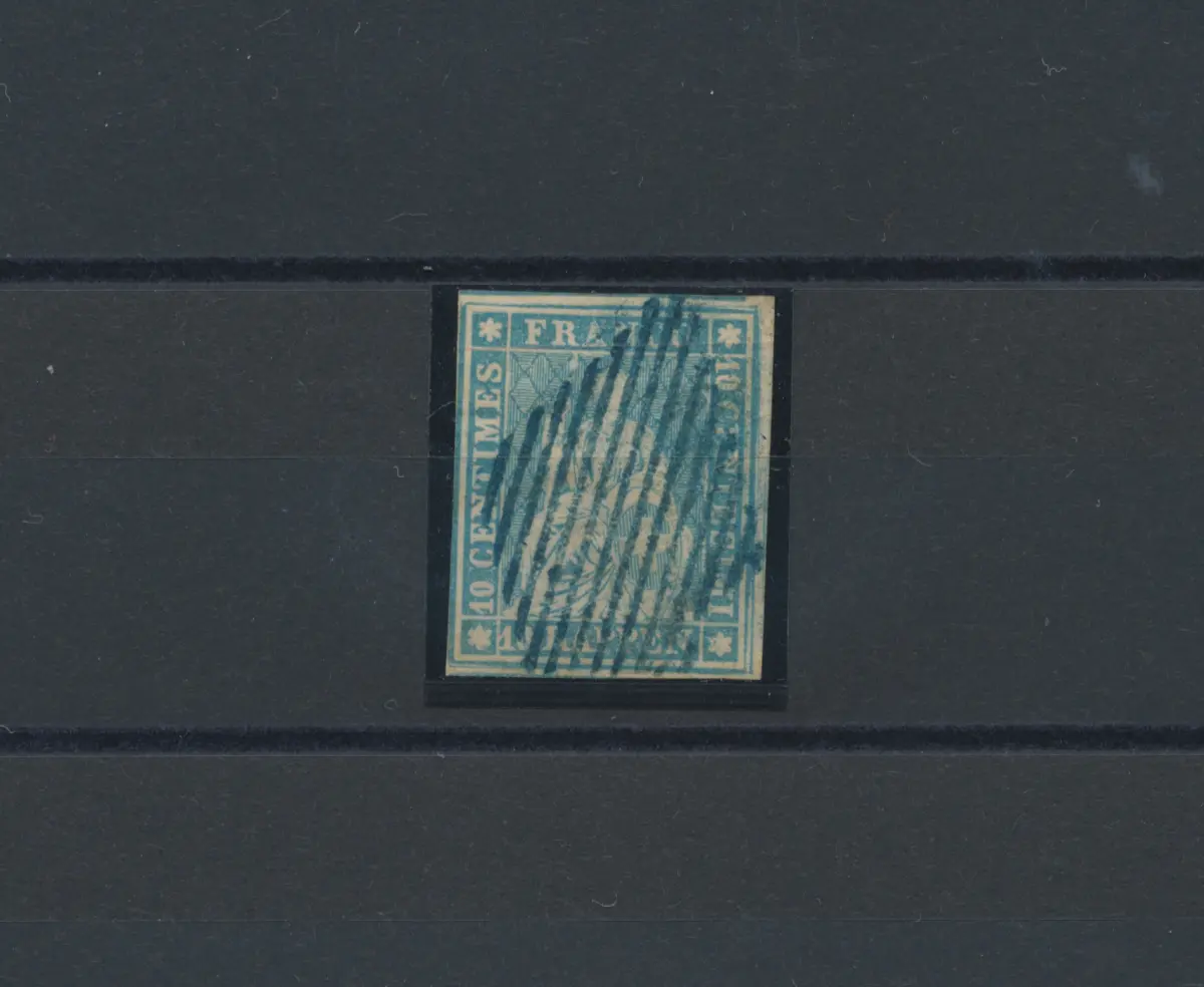 1856-57 SCHWEIZ, Nr. 27ea, 10 r. hellblau (roter Faden) Signiert Raybaudi e Oliva