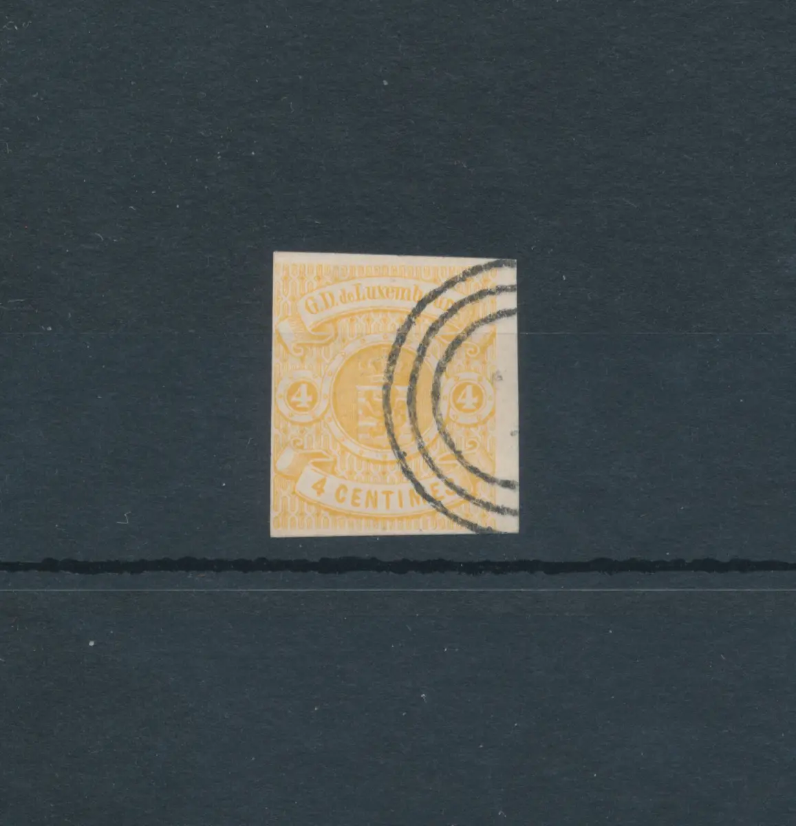 1859 - 63 LUXEMBURG - Nr. 5 - 4c. gelb ungezähnt - GEBRAUCHT Signatur Olive Wappen Einheitskatalog Euro 225 schwarze Kassette
