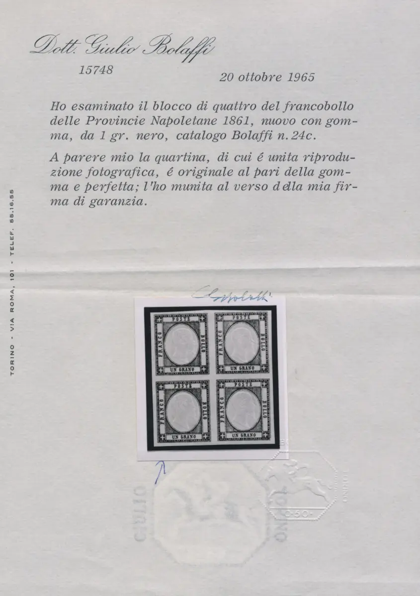 1861 Province Napoletane, n. 18/24 7 Werte MNH/MLH*/** Bolaffi Signaturen und Zertifikate