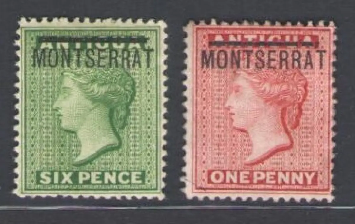 1876-83 Montserrat, Stanley Gibbons n. 1/2 - MH* Stanley Gibbons Katalog 2024 £ 113 - Lot Kolonien rot