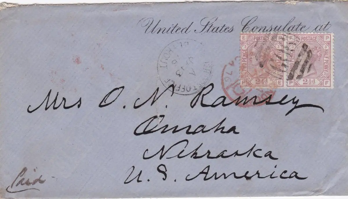 1876: letter British Post office Beyrout to US Consulate Nebraska