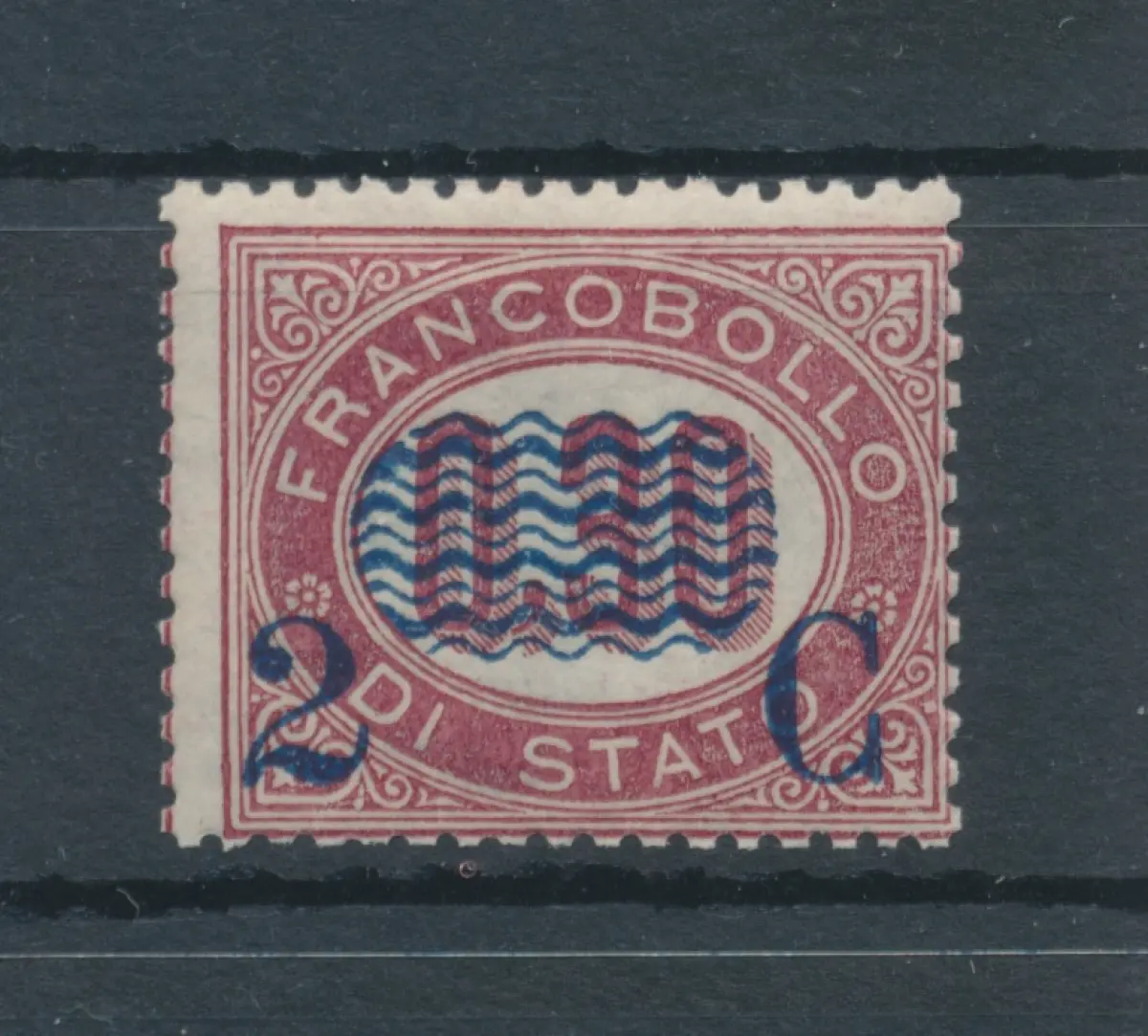 1878 Italien - Königreich, Nr. 33 - 2 Cent. auf 1 Lack, Service überdruckt, postfrisch** - Raybaudi Zertifikat Dienstmarken von 1875 mit blauem Aufdruck Sächsischer Katalog Euro 1125 - weißer Karton Haus - dezente Zentrierung