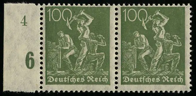 187a Freimarke Arbeiter 100 Pf Randpaar mit Formnummer 4, **