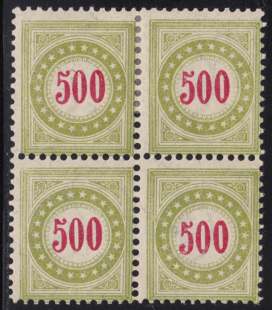 1889-91 Schweiz, Steuern Katalog Zumstein Nr. 22D - 500 olivgrün QUARTINA - MLH* - MNH** SBPV Zertifikat - Von der Weid