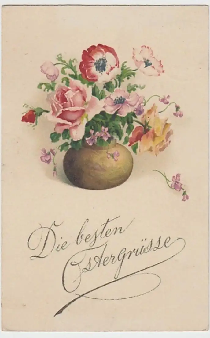 - (18946) Ansichtskarte, postcard, PPC - Ostern, Ranunkel, Rosen, Veilchen 1919