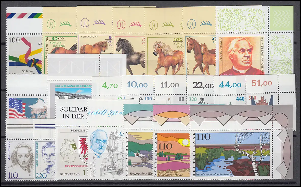 In allen Hauptnummern nach MICHEL komplett mit Blöcken, aber ohne Einzelmarken aus Blöcken. Alle Bogenmarken als Ecken oben rechts.