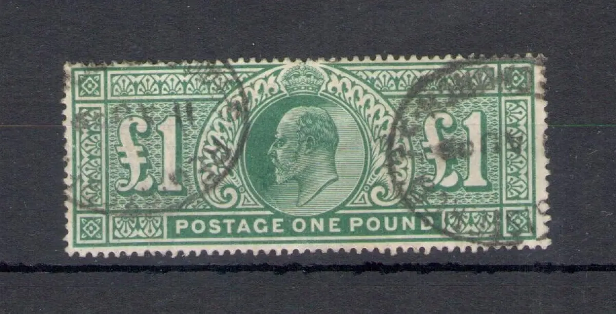 1902 GROSSBRITANNIEN - Stanley Gibbons Nr. 266 - 1 Pfund dull blue-green - Gebraucht Bildnisse von Edward VII Katalog SG 825