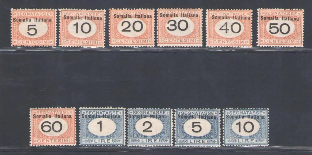 1909 Somalia, Segnatasse Nr. 41/51, sehr gute Qualität - postfrisch ** Sächsischer Euro 2500 Katalog - auf normale Zentrierung bewertet, obwohl viele Marken perfekt zentriert sind.
