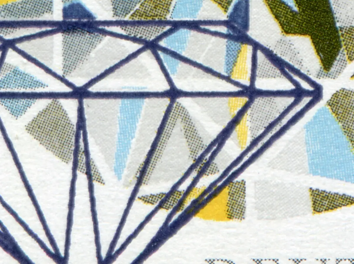 MICHEL-Plattenfehler IV: dunkelblauer Strich rechts im Prisma retuschiert [verschiedene Ausprägungen einer Retusche des PLF III]