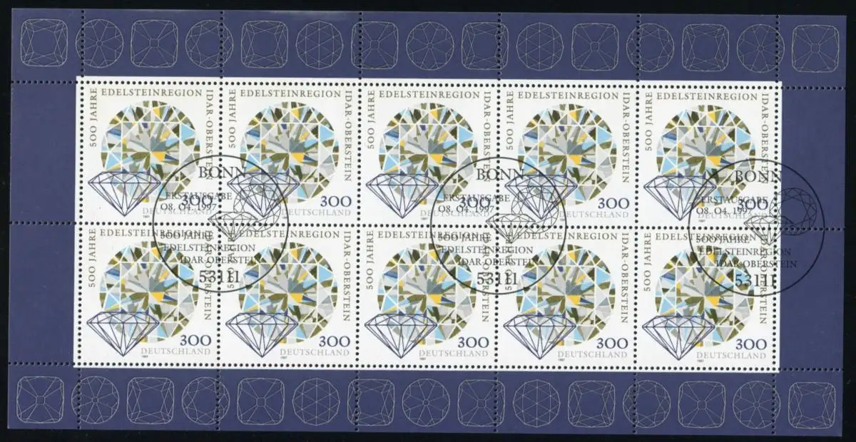 1911 Edelsteinregion - 10er-Bogen mit PLF IV: Retusche vom PLF III, ESSt Bonn