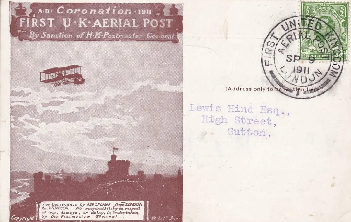 1911 GROSSBRITANNIEN, Erster Flug London-Windsor in der Farbe braun vom 9. September Rom 442 - Lot 25