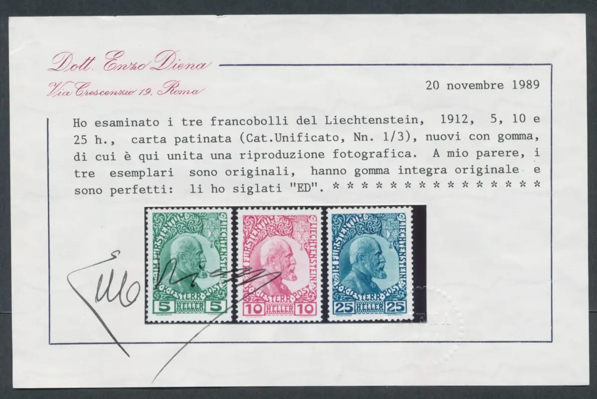 1912 Liechtenstein, n. 1/3, Abbildnis Prinz Johannes II., 3 Werte, gestrichenes Papier, postfrisch** Einheitskatalog Euro 1000 Auslandskarton Auslandskarton
