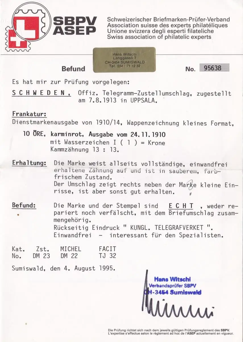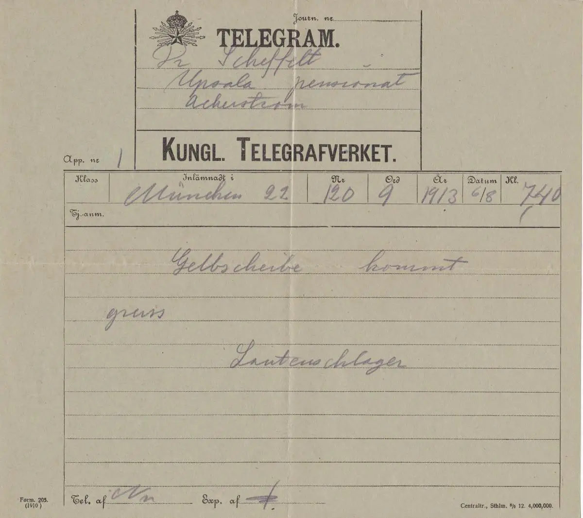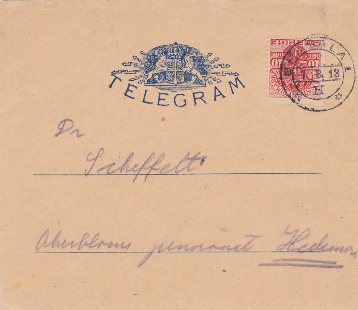 1913: Sweden/Telegram nach Uppsala - 10 Öre