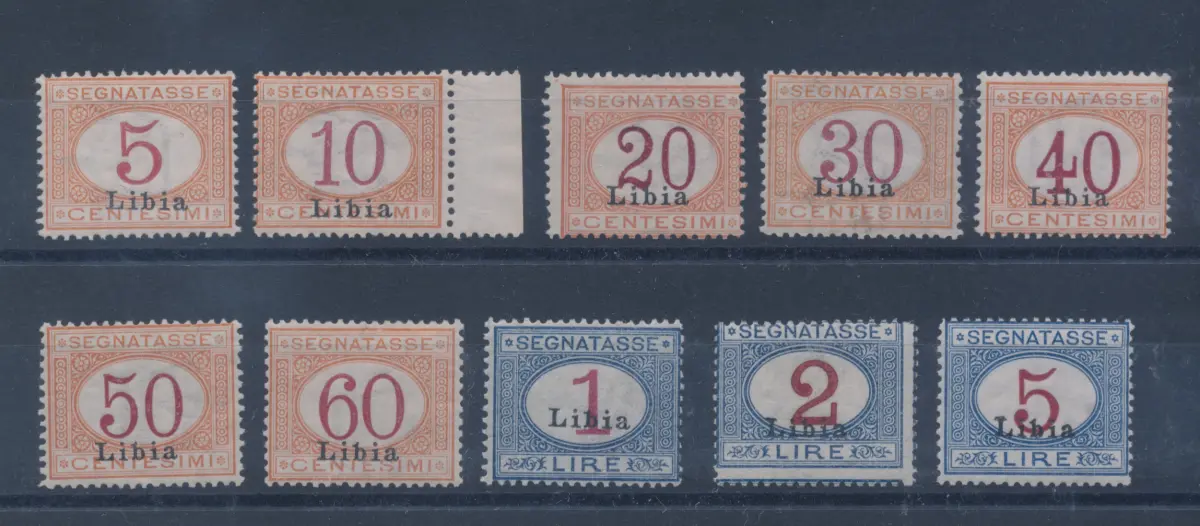 1915 LIBYEN, Steuermarken, 10 Werte, MLH* Sächsischer Katalog Euro 300 SCHWARZE BOX KOLONIEN