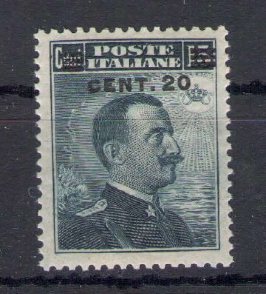 1916 Italien - Königreich, Nr. 106, 20 Cent auf 15 Kant grau schwarz, Vittorio Emanuele III - MNH ** - Vollgummi und Original - Sehr gute Zentrierung Sächsischer Katalog Euro 240 rote Box