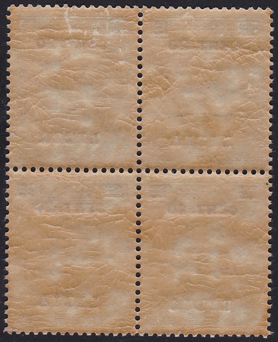 Italienische Briefmarke Nr. 106 überdruckt Viererblock 20c. su 15c. grau schwarz, violett Überdruck Sächsischer Katalog Euro 1000/2000 ZENTRIERT Los 81