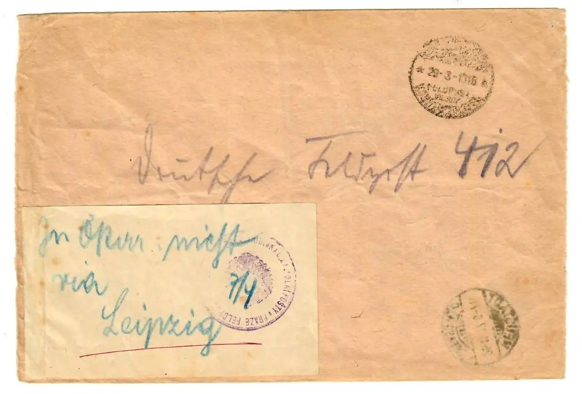 1918 Konstantinopel Feldpost MIL MISS auf Wendeumschlag mit Leitvermerk FP 412
