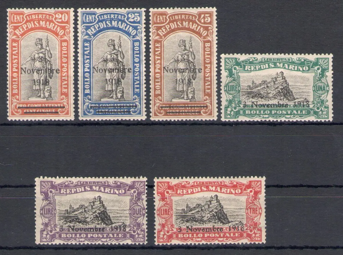 1918 SAN MARINO, Siegesfeier, Nr. 63-68 - 6 Werte - MNH ** SÄCHSISCHER KATALOG Euro 200 - Rote Box Ausland Claudio + Box M