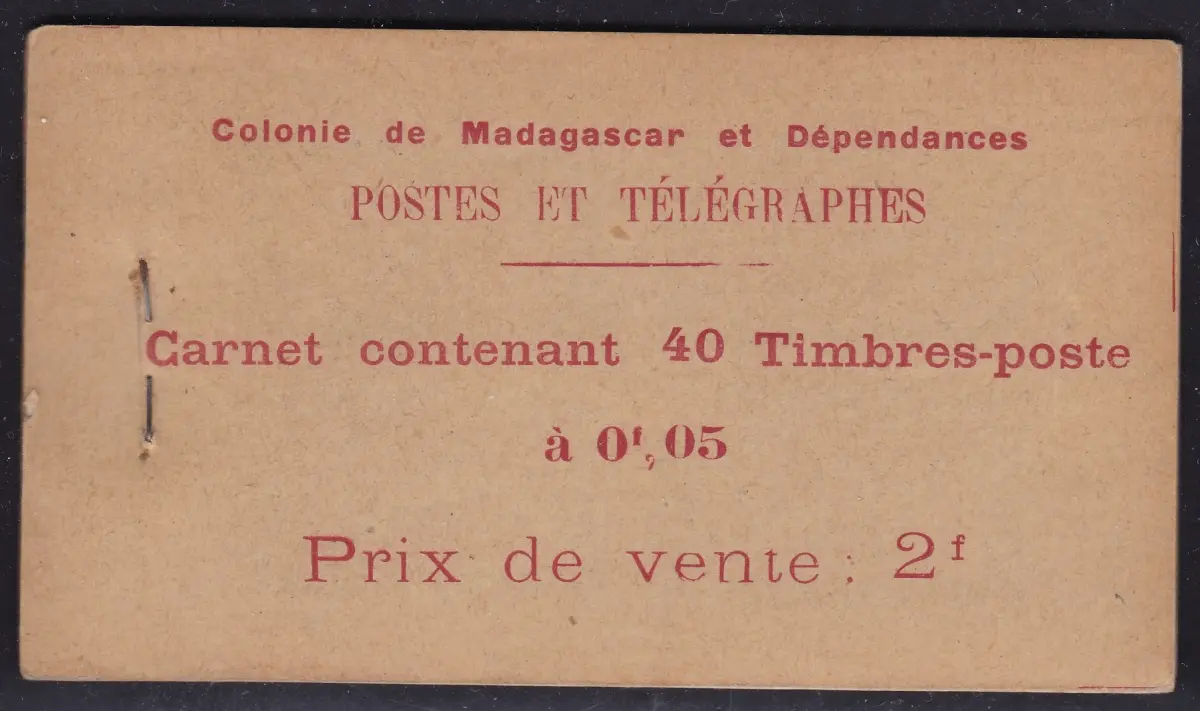 1922 MADAGASKAR - Libretto N. 4 5c. schwarz-rot MNH / ** SELTEN komplettes Heft mit 40 Marken 2 geklebte Seiten Yvert Katalog A / blaues Album
