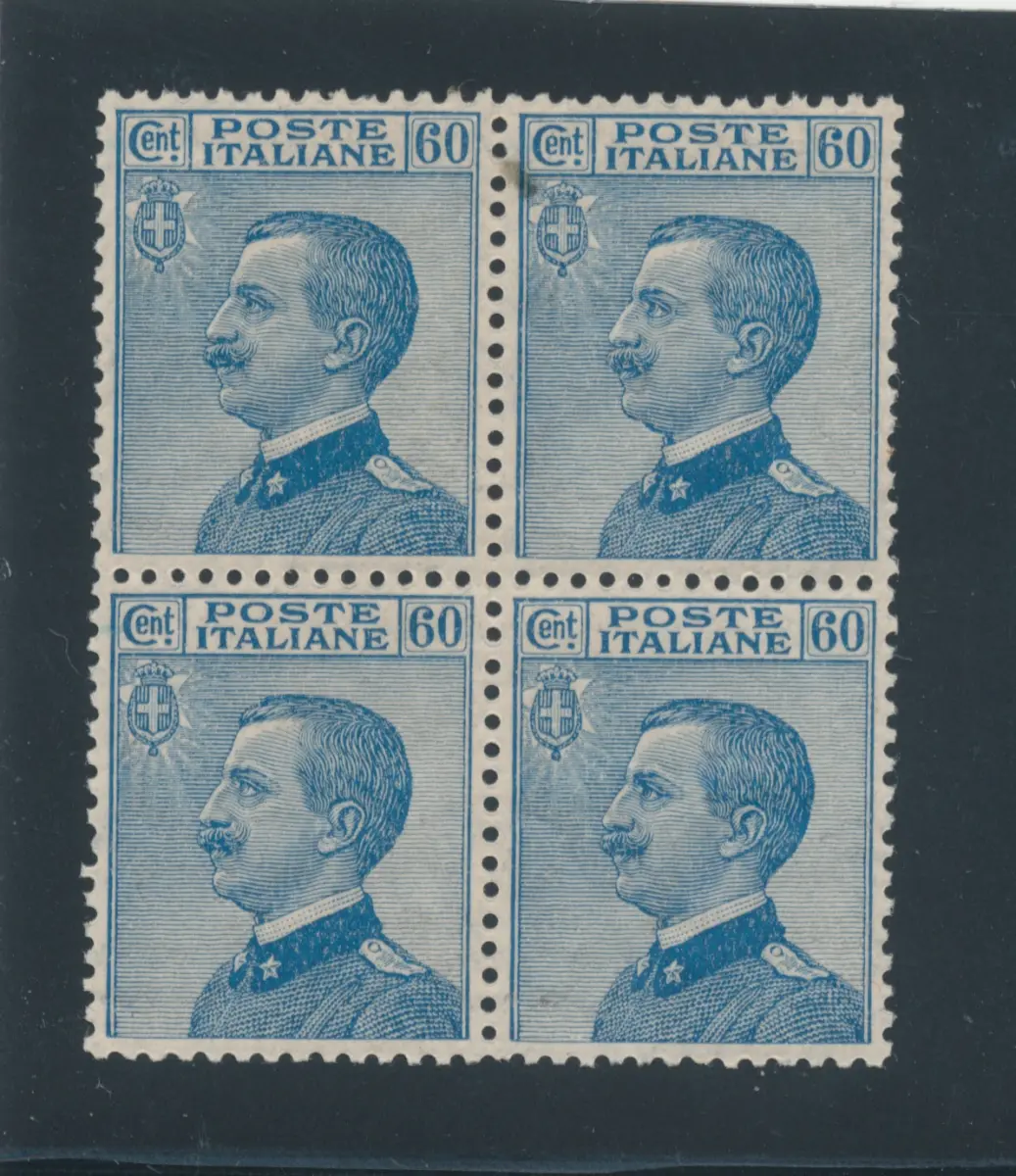 1923 Königreich Italien - Nr. 157, 60 Cent hellblau, MNH ** QUARTINA - Sehr gute Zentrierung Sächsischer Katalog Euro 480 Album schwarz Königreich