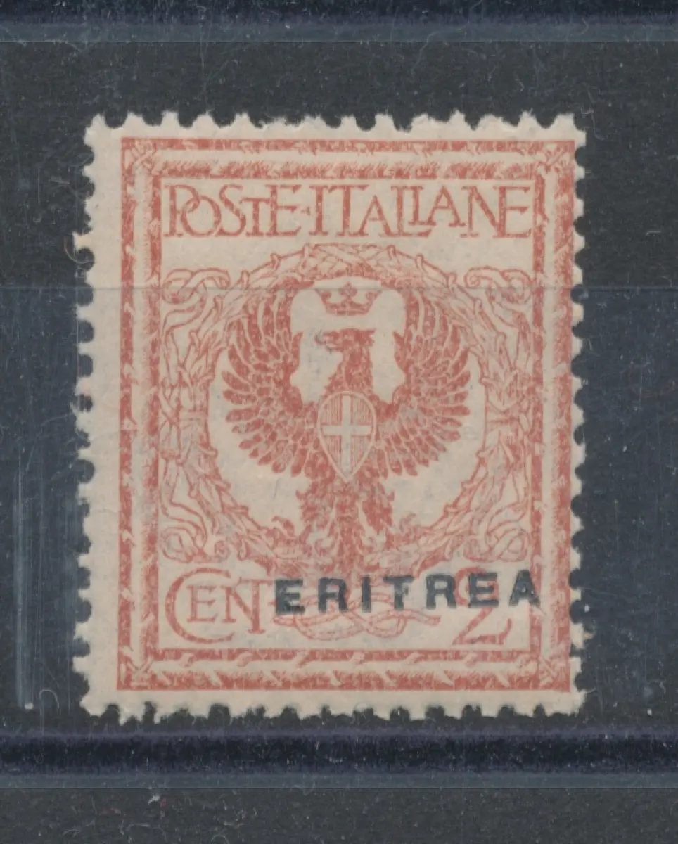 1924 ERITREA, 78d - 2 Cent rotbraun Aufdruck rechts verschoben postfrisch ** Sächsischer Katalog Euro 275 Karton Kolonien