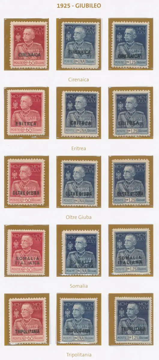 1925-26 Giro Coloniale, Jubiläum des Königs, gemeinsame Zahnungen postfrisch ** Sächsischer Katalog Euro 300 - Lot Italienische Kolonien braunes Album Haus 3