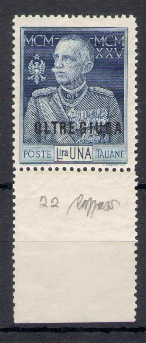 1925-26 Oltre Giuba, Nr. 22, 1 blaue Lira gezähnt 13 1/2, 1 Wert, postfrisch ** - postfrisch mit Vollgummi und Original.