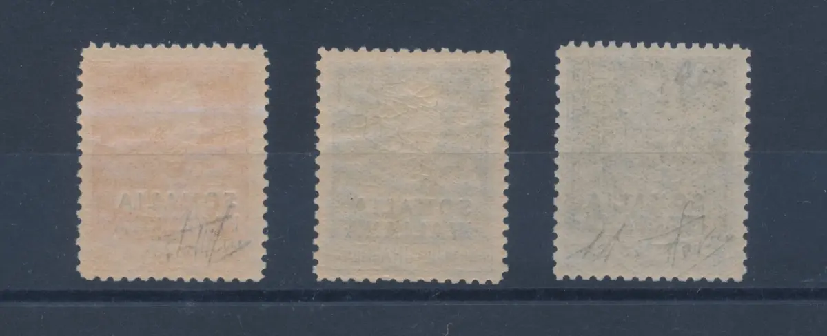 1925-26 SOMALIA - Nr. 67/69, 3 Werte, 11 gezackt, Zertifikat Chilio + Unterschriften auf der Rückseite Alberto Diena und Cilio - postfrisch ** Sächsischer Katalog Euro 4800