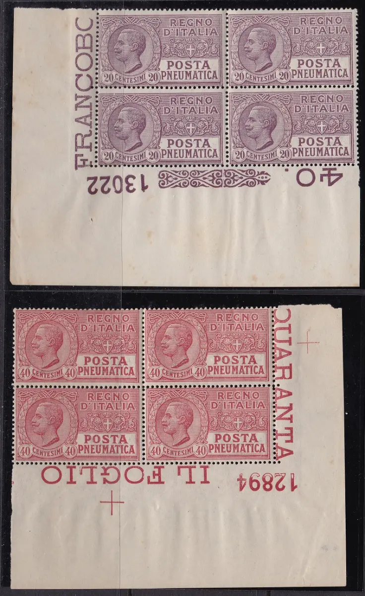 1925 Königreich Italien, Luftpost 4/6 MNH/** BLÖCKE MIT TISCHNUMMERN Bildnisse von Vittorio Emanuele III., Typ von 1913-23 Sächsischer Katalog Euro 600 +++ Lot 83
