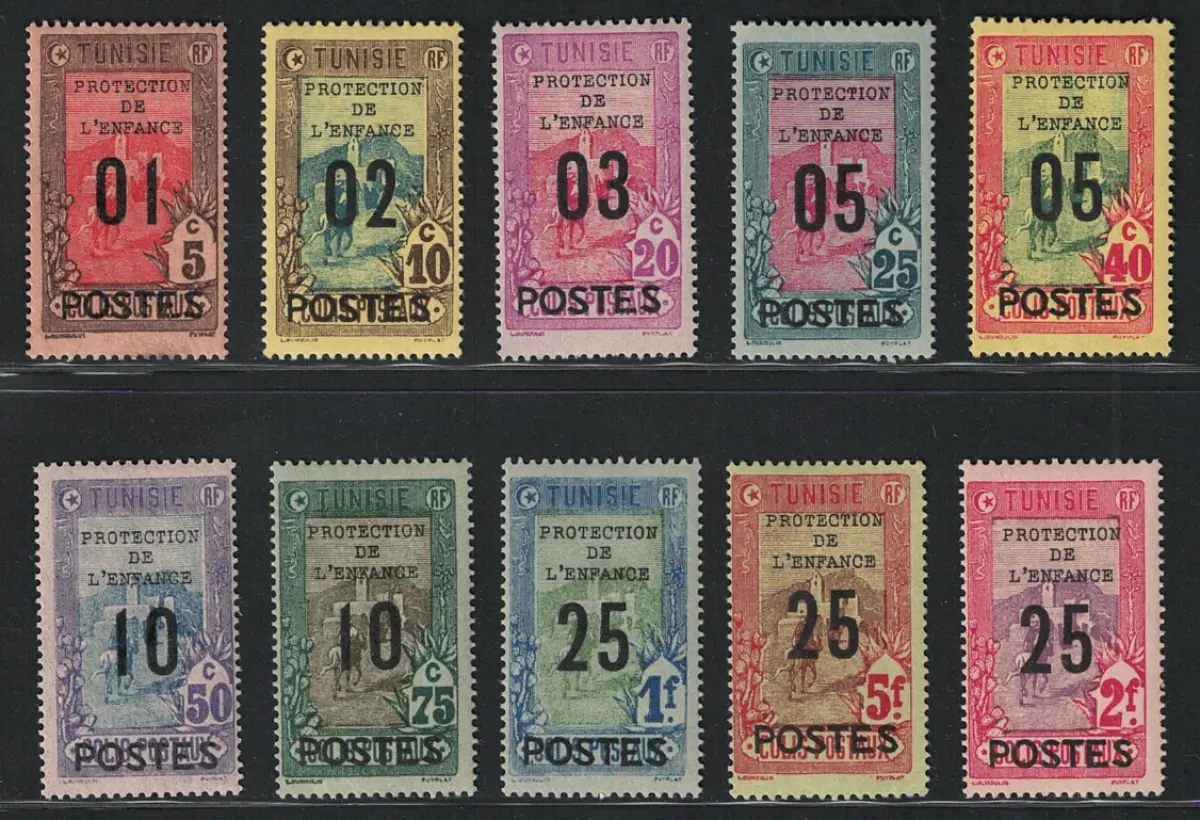 1925 Tunesien, Yvert Nr. 110/19, Überdruckt, MLH* Yvert Euro 90 - Grüner Karton Länder Afrika