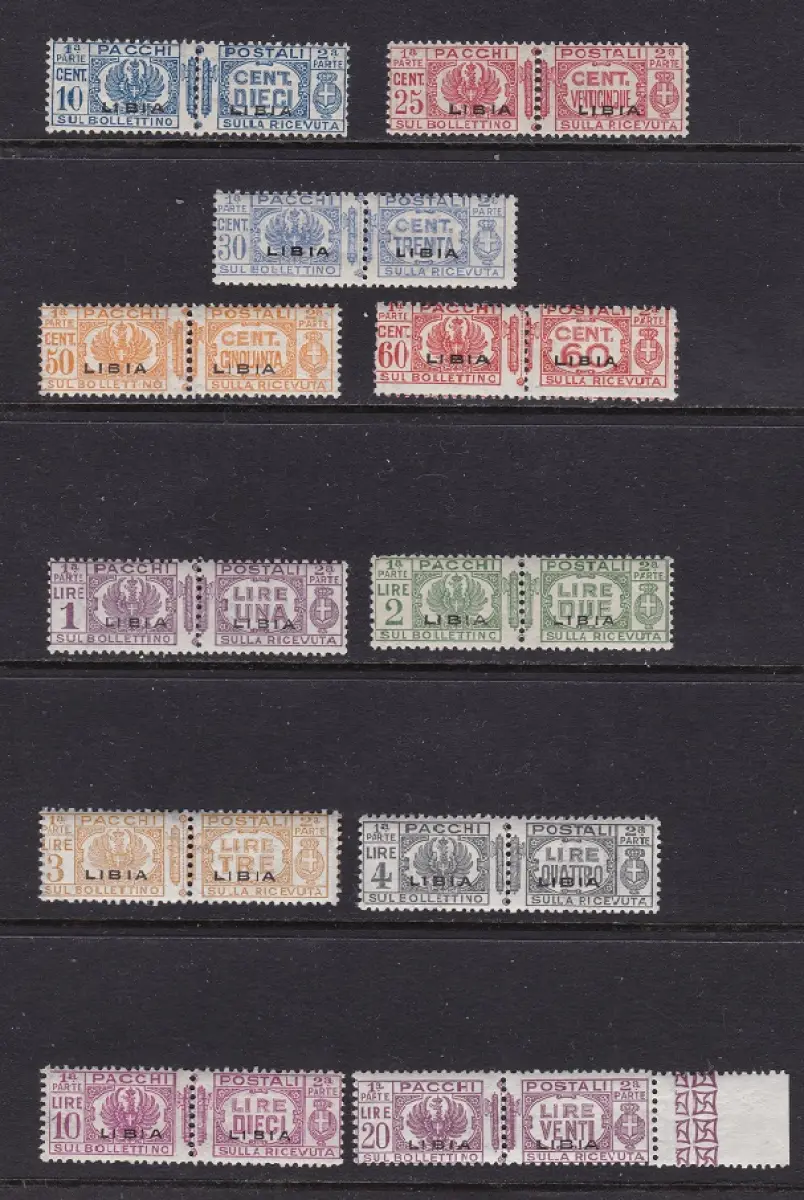 1927-37 LIBYEN, Postpakete Nr. 14/24 MNH/** Italienische Postpakete von 1927-1934 (Littorio-Bündel) überdruckt Sächsischer Katalog Euro 2.800 schwarze Box Kolonien + Lot M