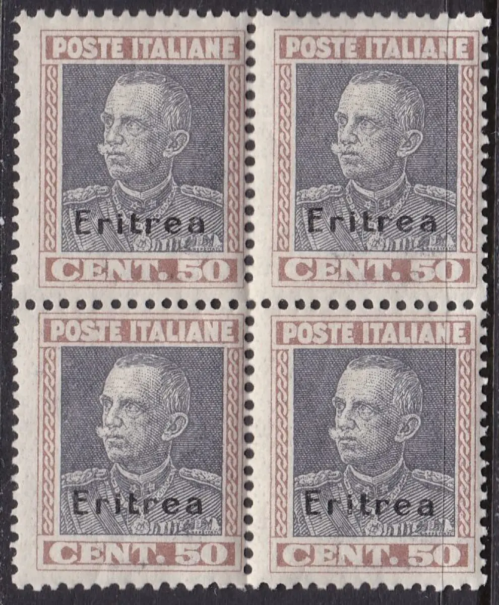 1928 ERITREA, Nr. 128 50c. braun und grau QUARTINA MNH / ** Sächsischer Katalog Euro 300 Lot 81
