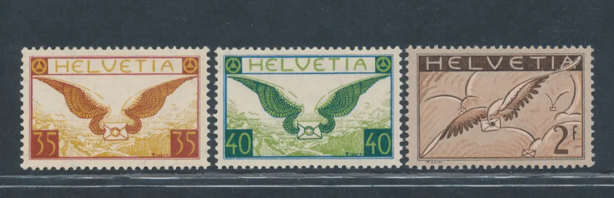 1929-30 SCHWEIZ, Luftpost Mattpapier # A13A/A15A, MNH ** Einheitskatalog Euro 710 Lot 53 grüner Ordner Postiglione
