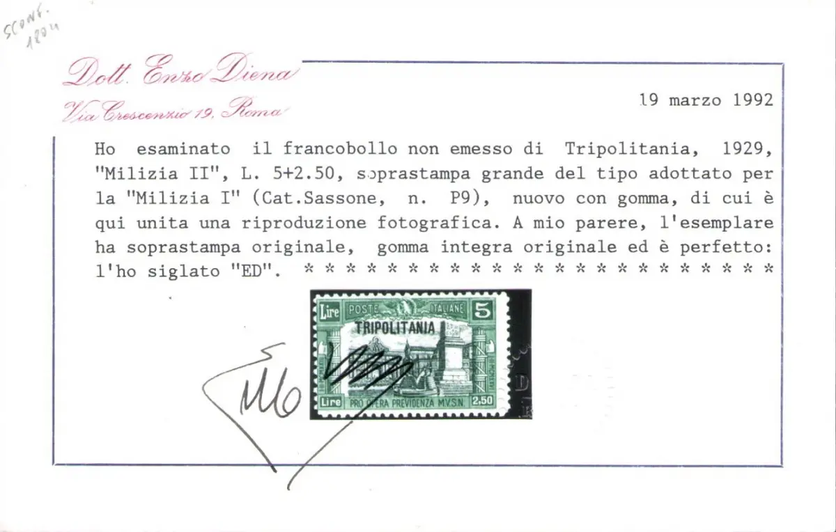 1929 Tripolitanien, Miliz II, 5 Lire + 2 Lire oliv und schwarz, Essay P9, postfrisch ** Sachsen Euro 1800 Lot M
