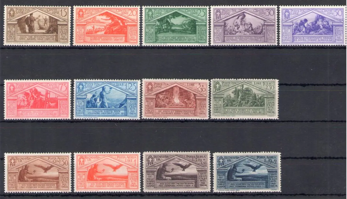 1930 Italien - Königreich - zweitausendjähriges Geburtstag Vergil Nr. 282/90 + Luftpost Nr. 21/24 - 13 Werte - postfrisch ** roter Karton