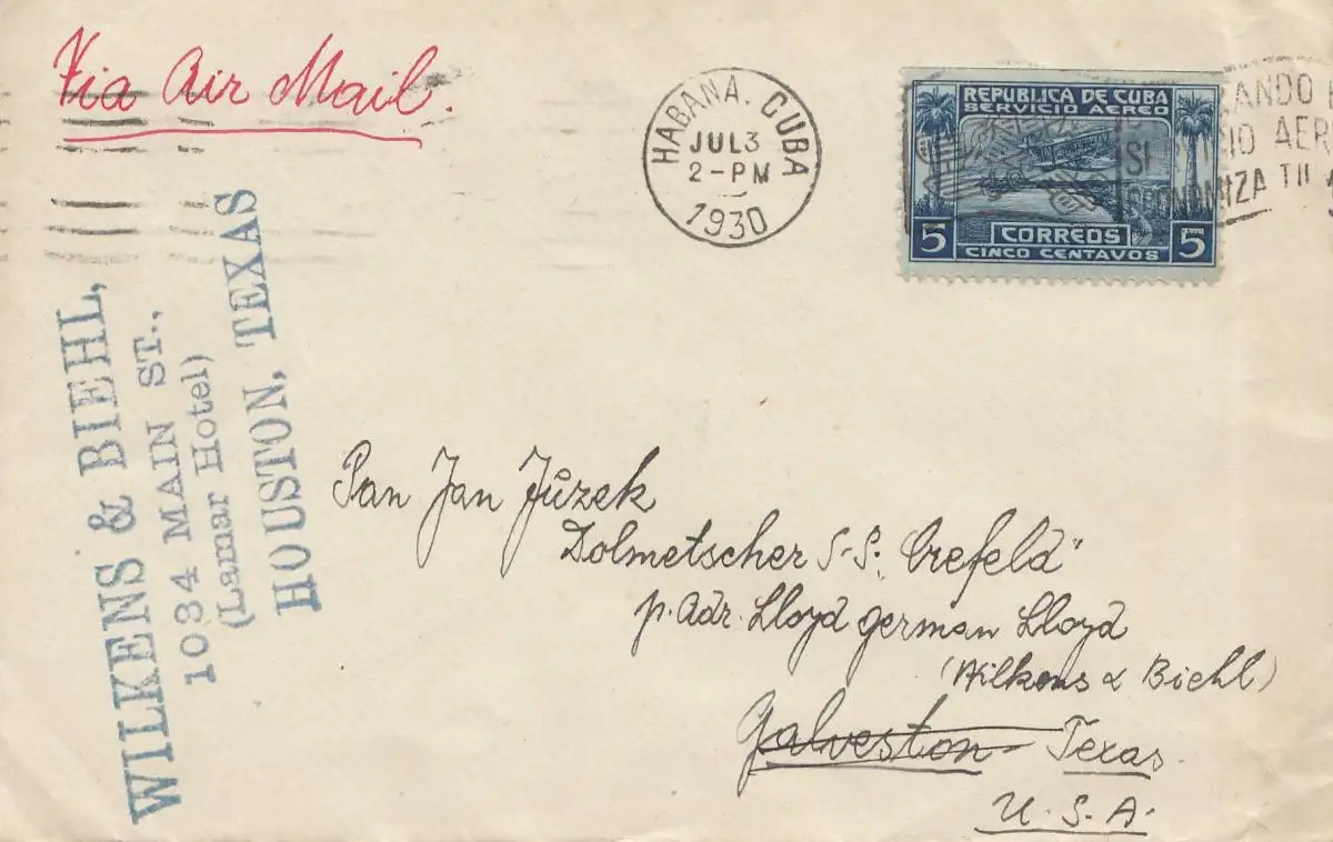 1930: Lamar Hotel Houston/Texas from Habana to a Lloyd interpreter
