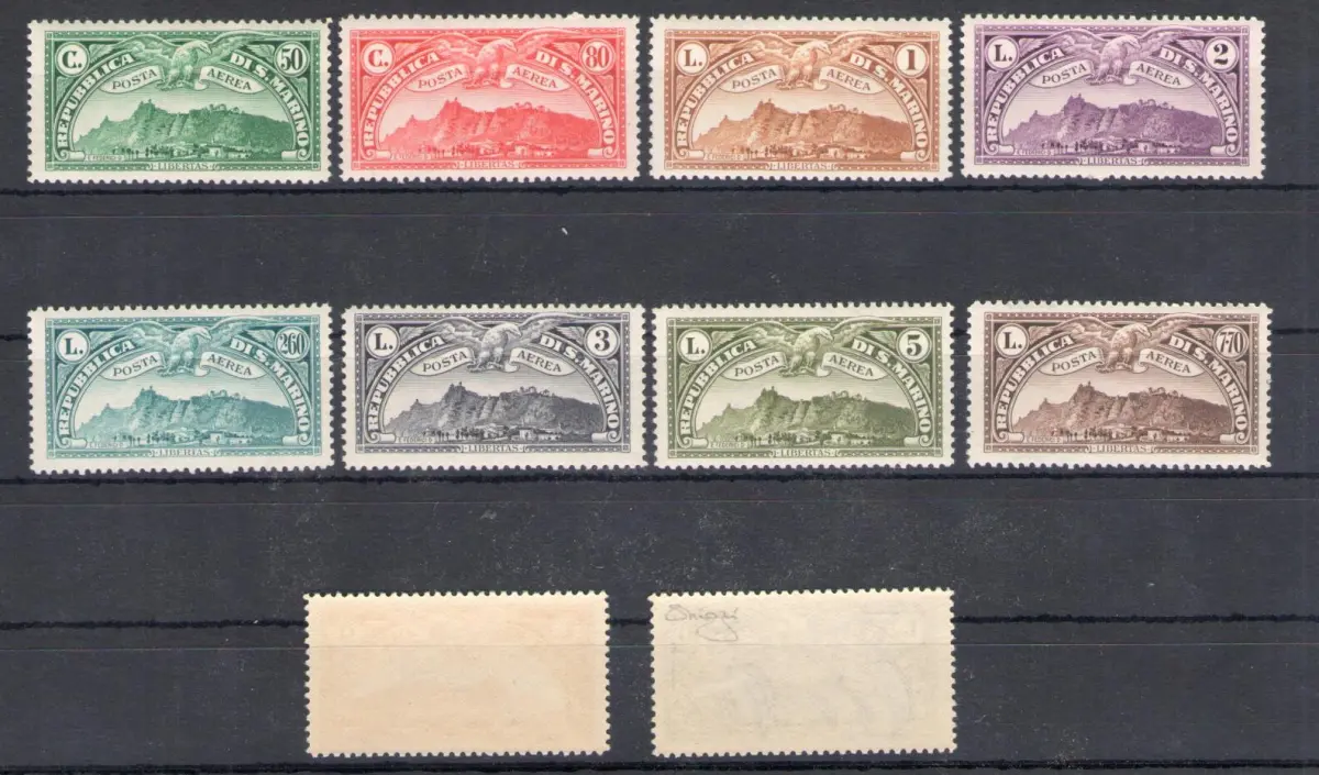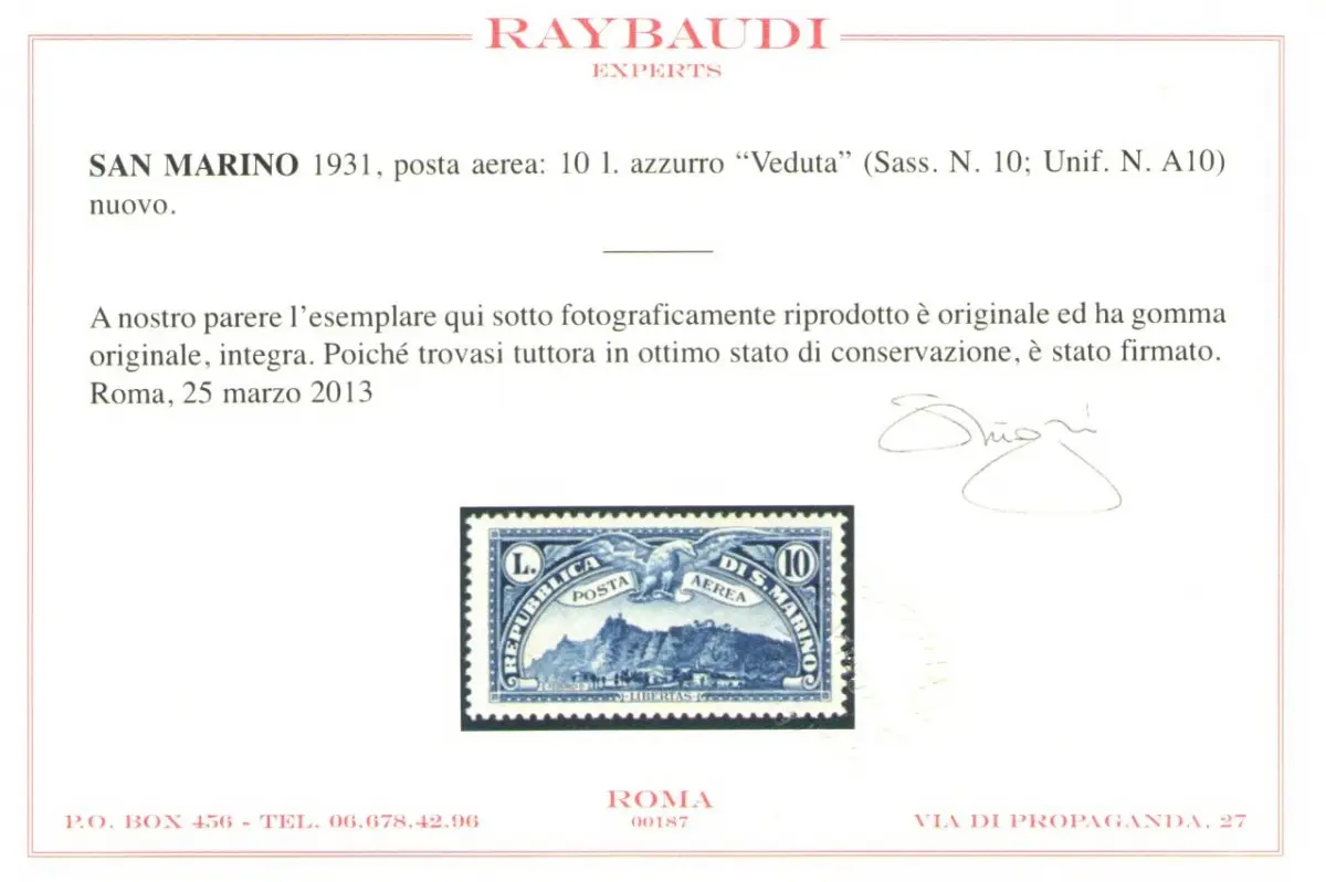 1931 SAN MARINO 'Luftansicht von San Marino' Luftpost Nr. 1/10 - 10 Werte - MNH ** Raybaudi Zertifikat Sächsischer Katalog Euro 2.000 - TOP ZENTRIERUNG - rote Box