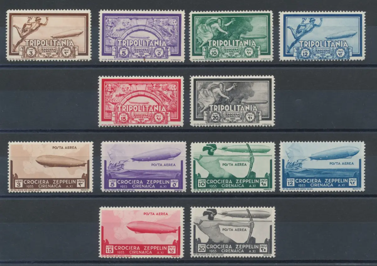 1933 Italienische Kolonien - Kolonialreisen - Zeppelin - 12 Werte, postfrisch und einwandfrei, postfrisch ** Sächsischer Katalog Euro 600 Black Box Kolonien