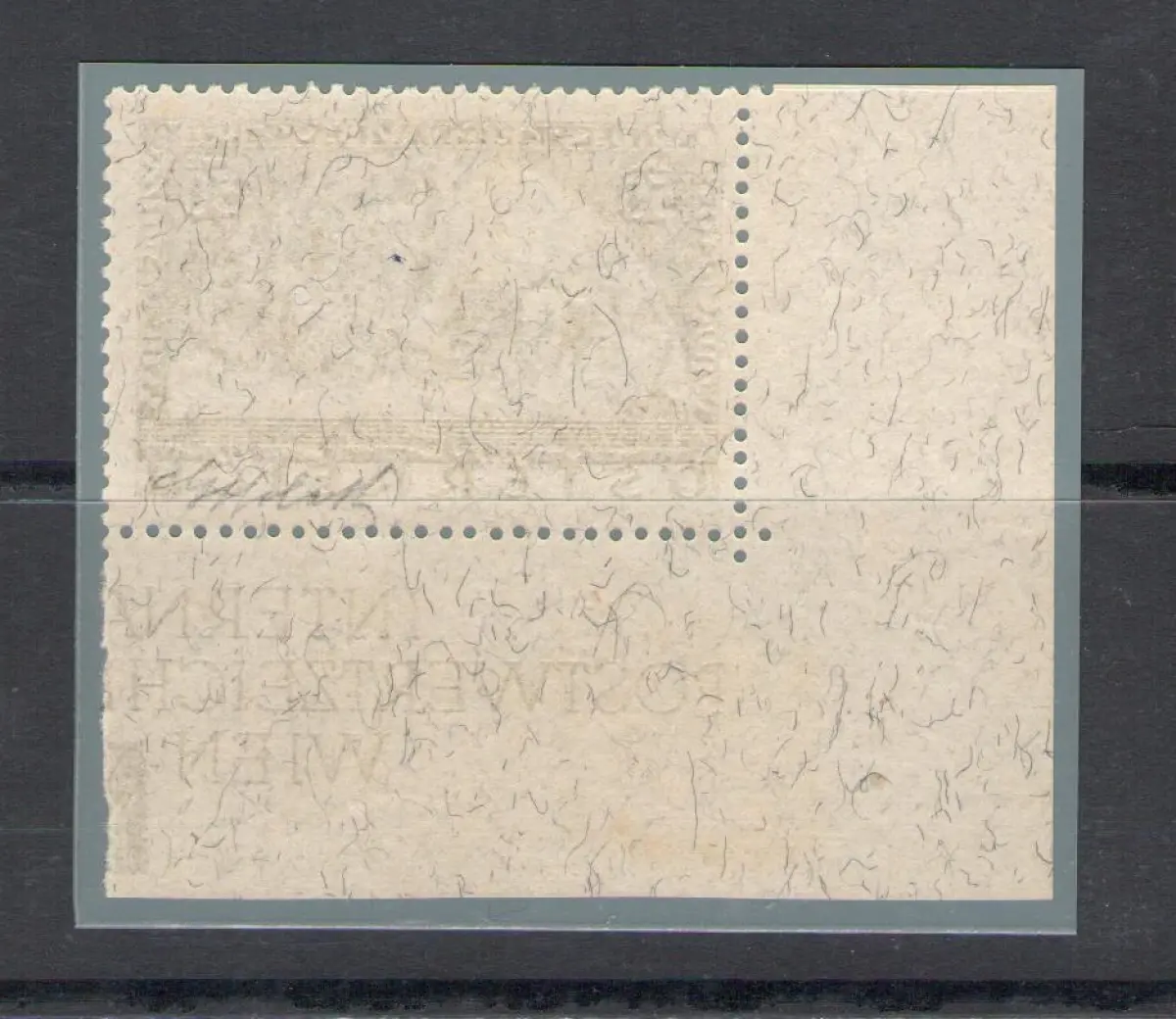1933 ÖSTERREICH - W.I.P.A. 50+50 g., n. 430A Papier mit Seidenfäden - Blattecke - MNH ** - Signiert für erweiterten Giulio Bolaffi Yvert-Katalog Nr. 430a Euro 800 - 1ALB Rot